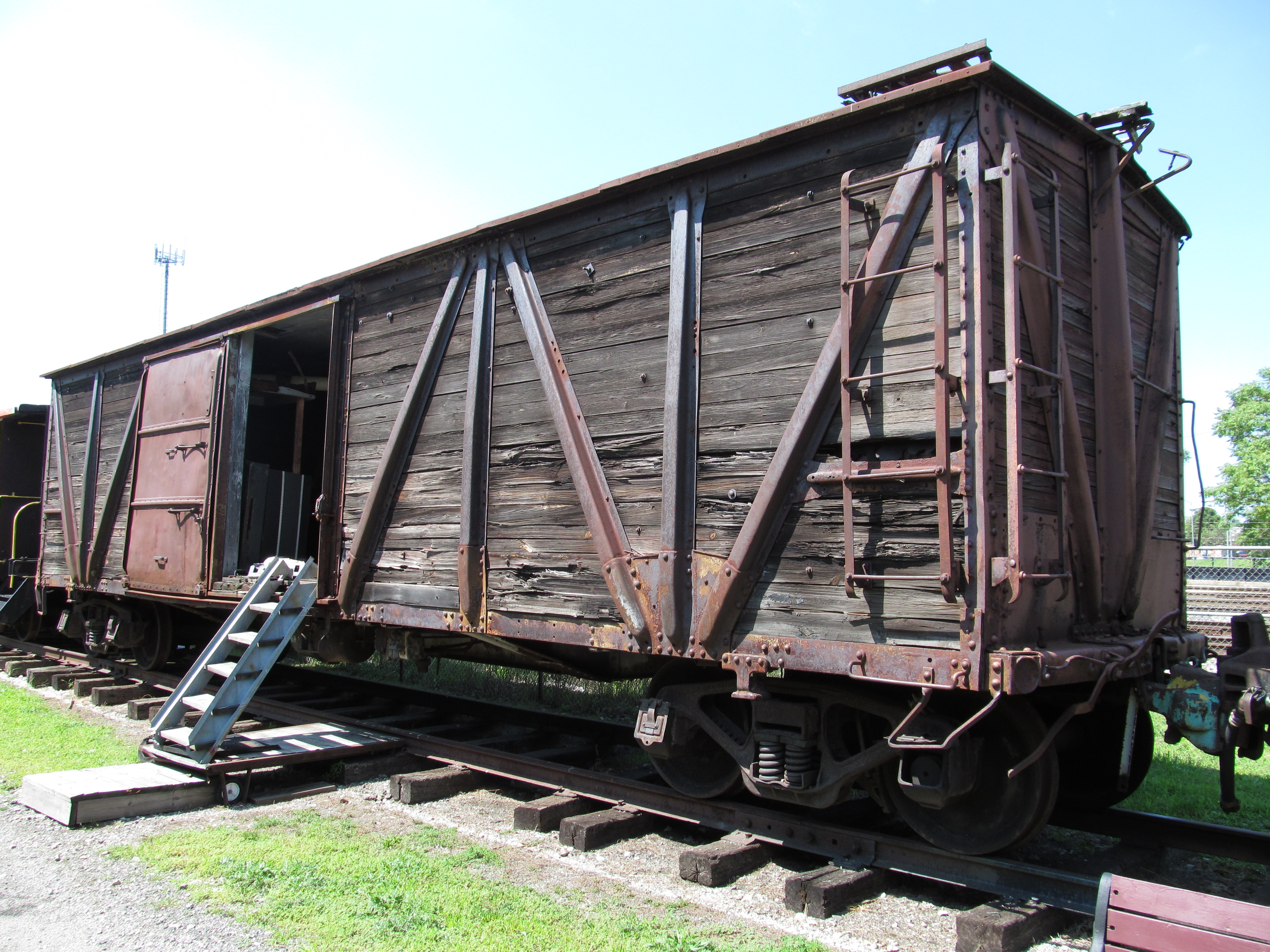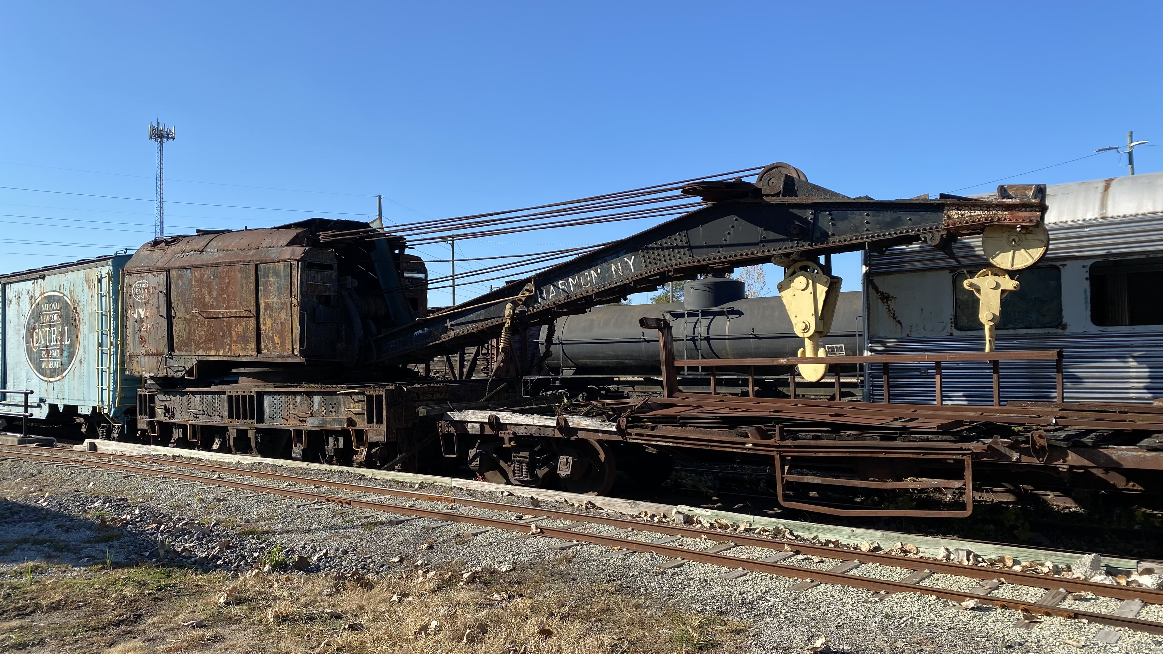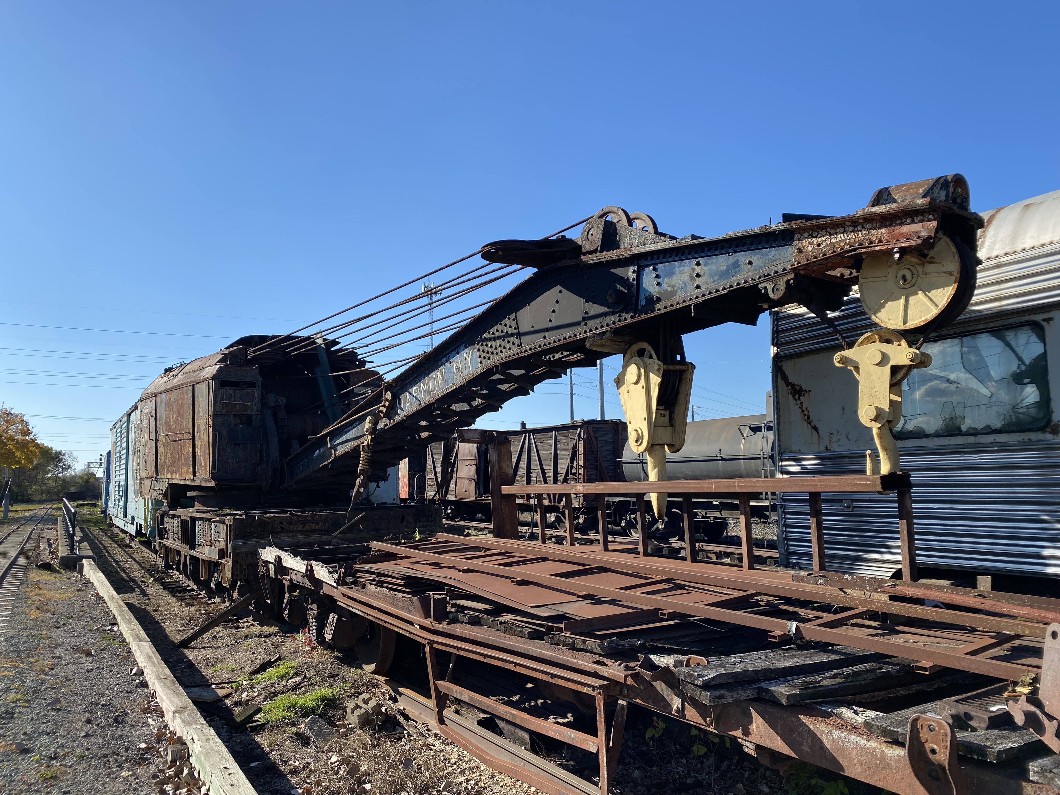 Pennsylvania Railroad X26 boxcar: Converted into Idler car following fire for NYC X-28 Crane, Donated to the NNYCRRM in 1991.